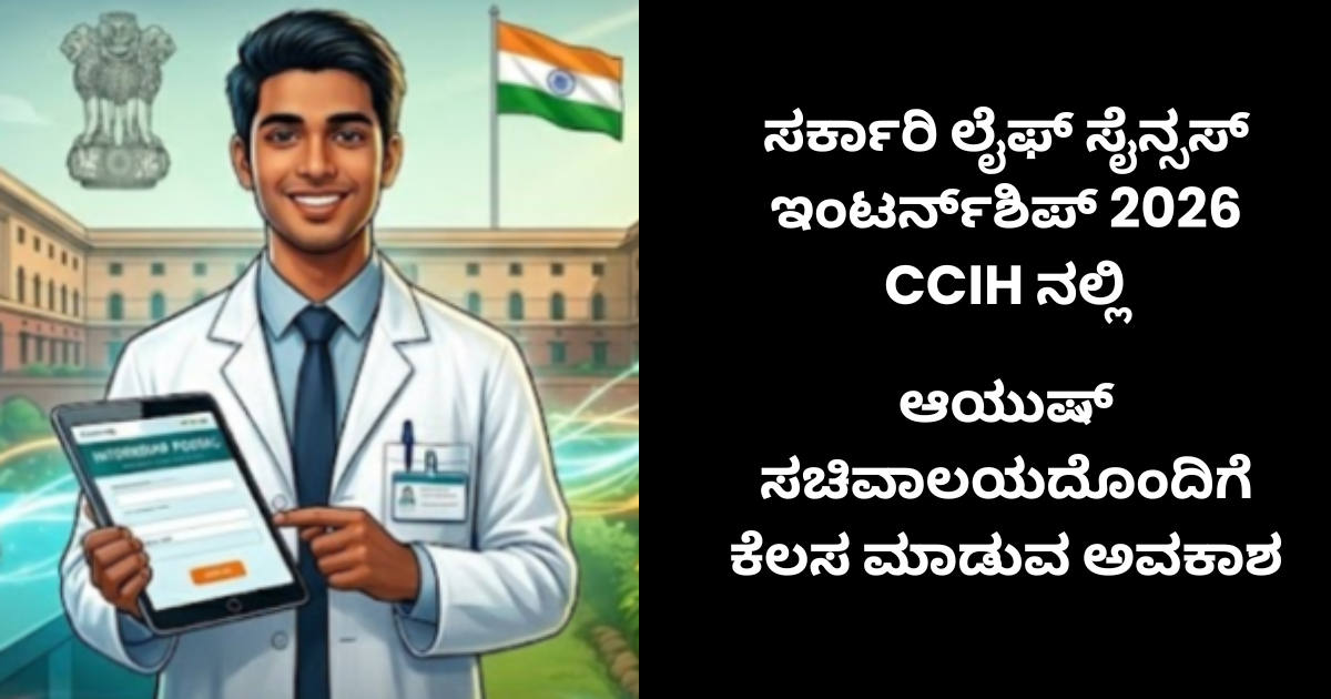 ಭಾರತ ಸರ್ಕಾರದ ಆಯುಷ್ ಸಚಿವಾಲಯದ ಅಧೀನದಲ್ಲಿ ಕಾರ್ಯನಿರ್ವಹಿಸುವ ಸಿಸಿಐಎಚ್ (CCIH) ಸಂಸ್ಥೆಯು ಲೈಫ್ ಸೈನ್ಸ್ ವಿದ್ಯಾರ್ಥಿಗಳಿಗಾಗಿ ಅತ್ಯುತ್ತಮ ತರಬೇತಿ ಅವಕಾಶವನ್ನು ಕಲ್ಪಿಸಿದೆ. ‘ಸಂಕಲ್ಪ’ (SANKALP) ಎಂಬ ವಿಶೇಷ ಯೋಜನೆಯಡಿ ಈ ಇಂಟರ್ನ್‌ಶಿಪ್ ಅನ್ನು ನೀಡಲಾಗುತ್ತಿದ್ದು, ಇದು ವೈಜ್ಞಾನಿಕ ಸಂಶೋಧನೆ ಮತ್ತು ನಾವೀನ್ಯತೆಯಲ್ಲಿ ಆಸಕ್ತಿ ಇರುವ ಯುವಕರಿಗೆ ಉತ್ತಮ ವೇದಿಕೆಯಾಗಿದೆ.